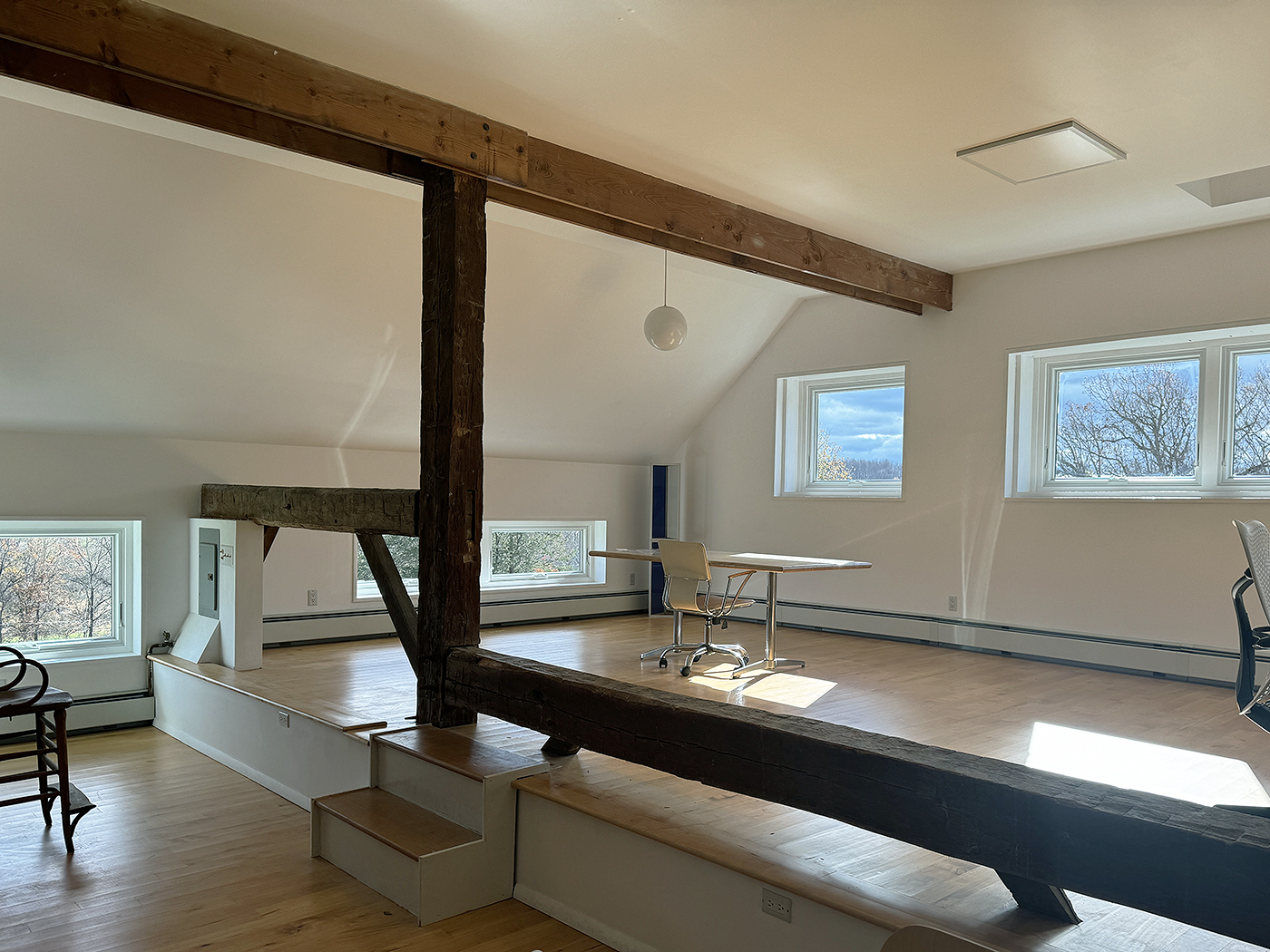 In 1978, Colin and I bought the barn with 7 other barn buildings, on 3 acres for $20,000. After 2 years of work, while living inside a 1964 Airstream trailer pulled into the barn, we were able to move in. Four years later, the living area was complete. Next, we built an upstairs studio for Colin and later added work space for both of us in the unfinished part of the Barn. In the years to come, we continued to make upgrades to the main barn, the property, and other buildings.