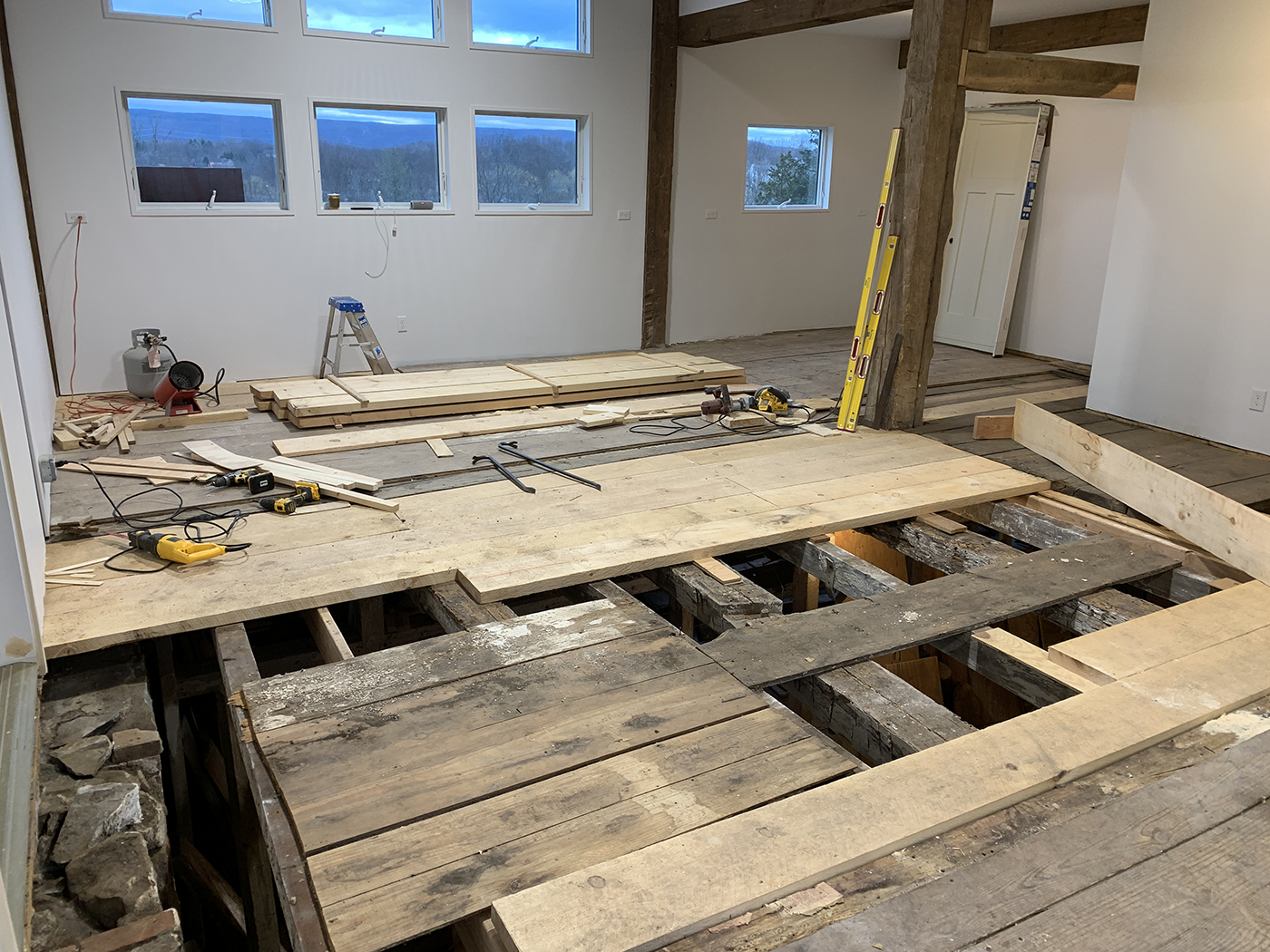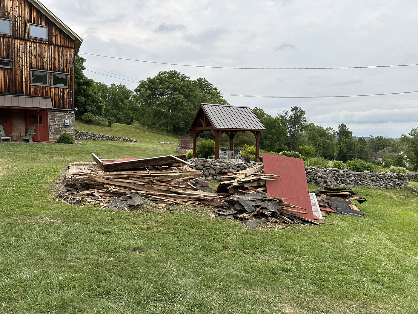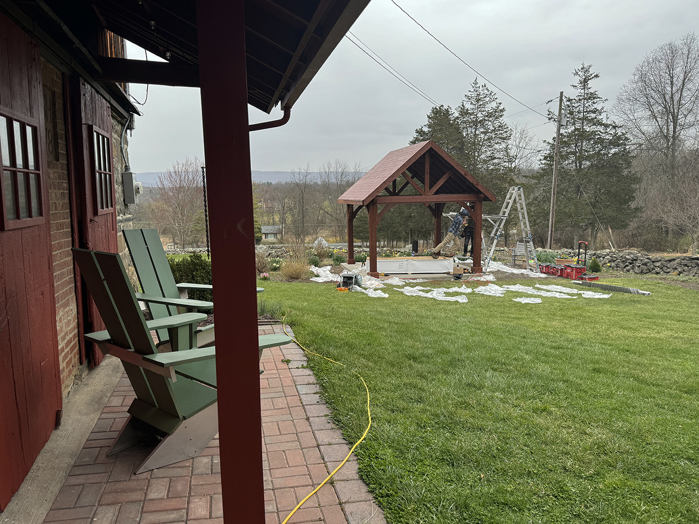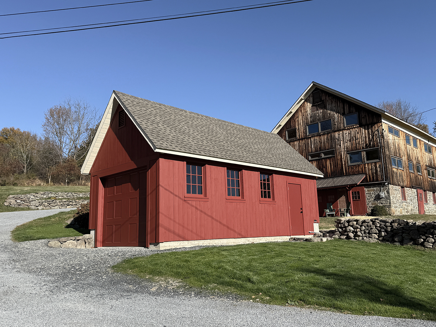 In 2015, about one third of the barn was still unfinished, allowing us (with the help of Brian's son, Tyler) to rebuild the space into a sculpture studio for Brian. A welding shed and garage would follow as well as updates to existing buildings for additional storage. We did extensive excavation and added new retaining walls to accomodate the new structures. The property is now filled with Brian's sculptures.